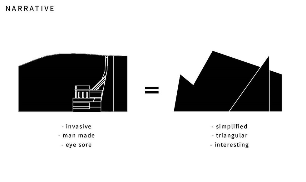 The concept of trash typography is a base for this project to build upon. Drawing inspiration from the dam and reforming it so that it has more connection to Khao Yai’s mountainous terrain, it is rehabilitated and becomes a human and nature oriented project. Activities found inside are also crucial to reinforce this idea of contradiction in the project. Where the brief calls for a data center that is detached from any culture and life, a sports center seems to be the complete opposite. The average rocks from nature are taken and made into a data center and for a rock climbing center. The facade also reflects this nature and human aspect where the facade and balconies serve to resemble rocks with different patterns, some even jutting out from the rest, and some made from man made porcelain. The aspect of human and nature collaboration is the ultimate goal of this data center.